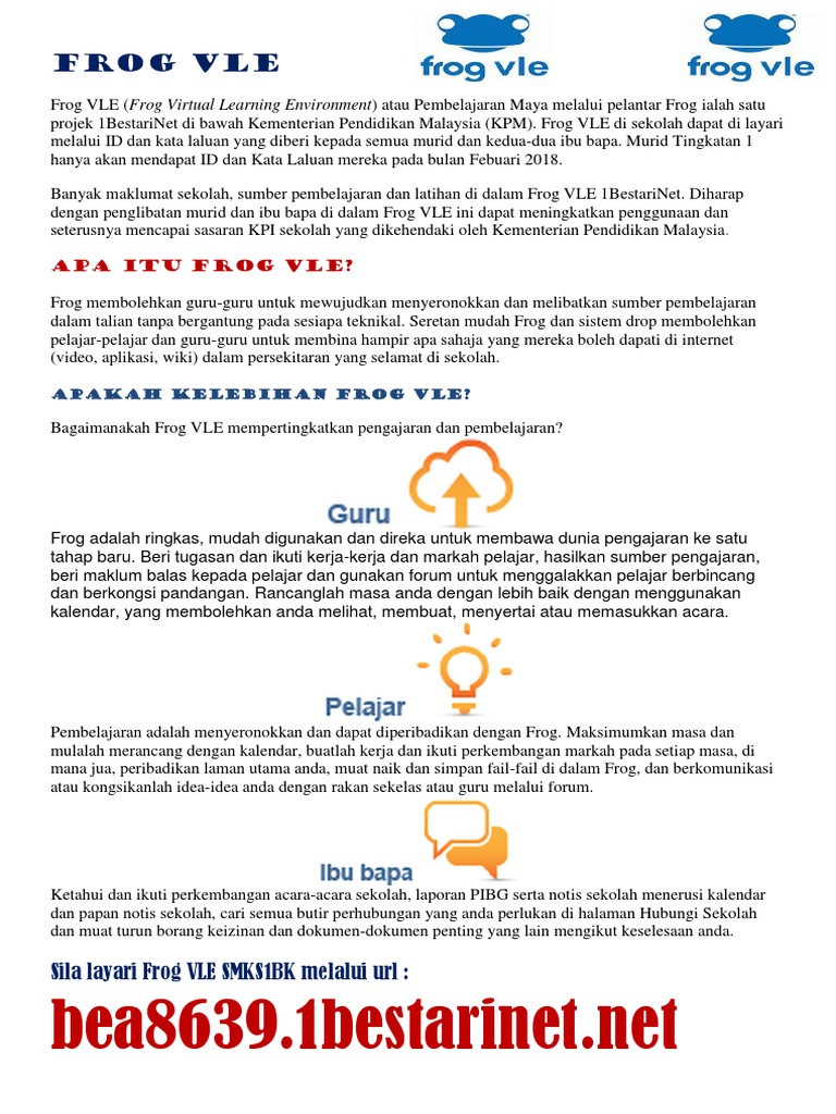 Cikgu hailmi jumaat, mac 25, 2016. Apa itu vle frog mp3 & mp4. Frog vle atau virtual learning environment yang dipilih bagi projek 1bestarinet. Sebarang pertanyaan akan kami layan. In malaysia, the frog vle is available to all 10,000 schools in the country through the 1bestarinet project.
