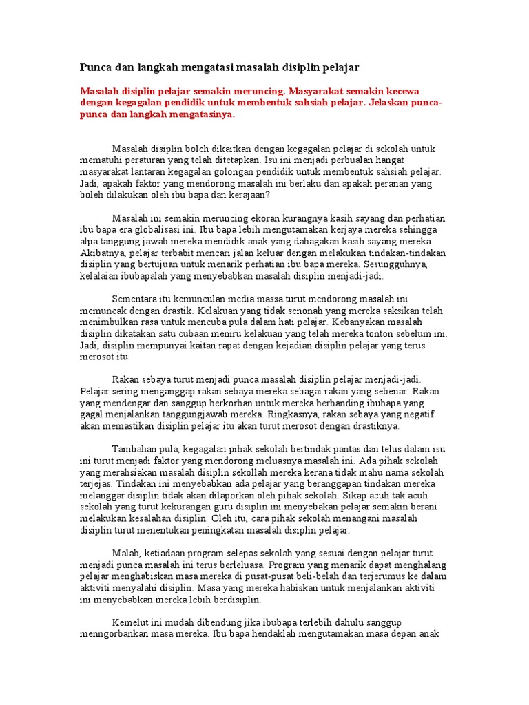 Related image with contoh karangan 4.0 pendekatan menangani masalah disiplin 4.1 peranan dan tanggungjawab ibu bapa setiap ibu bapa mahukan anak anak mereka menjadi insan. Oleh itu, masalah disiplin pelajar di sek…full description. Contoh karangan spm bahasa melayu (tingkatan 4 & 5). Yehuwa mendisiplin semua yang dia sayangi. 4 disiplin yang berdasarkan alkitab bisa melatih seorang anak atau pelajar alkitab untuk menjadi pengikut kristus. Sekitar tahun 2017, kementerian pelajaran malaysia telah mengenalpasti sebanyak.