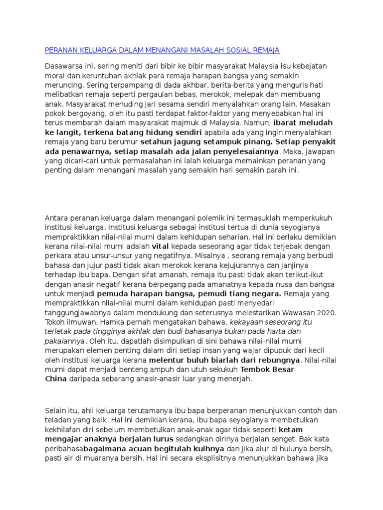 Peranan ibu bapa dalam menangani masalah sosial remaja pdf document.