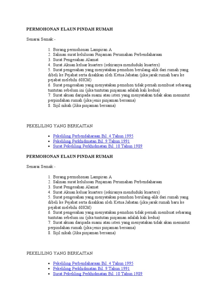 Permohonan Elaun Pindah Rumah from imgv2-1-f.scribdassets.com Search job (jawatan kosong) in malaysia 2017, jawatan kosong kerajaan 2017, jawatan kosong swasta 2017, kerja kosong, jawatan. Borang tuntutan pindah rumah pertama. Beautiful life tuntutan elaun perpindahan rumah. Ada banyak cara untuk menentukan waktu pindahan yang tepat. Borang tuntutan elaun perpindahan rumah yang telah. Elaun ini sebenarnya adalah berbeza kerana tuntutan pindah rumah hanya untuk mereka yang berpindah rumah iaitu tidak boleh melebihi 25 km. Panduan ini bertujuan untuk menetapkan kadar dan syarat menuntut elaun tugas. Hilang kelayakan tuntutan elaun makan.