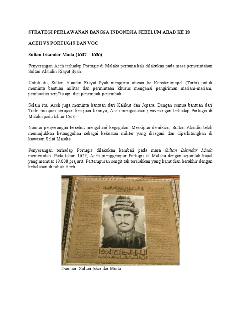 Kesultanan Aceh Menerapkan Strategi Untuk Melawan Roboguru from img-video-tracking.ruangguru.com James, dengan menaiki beberapa buah perahu. Pada 10 ogos 1511 orang portugis menyerang melaka lagi dan pada 24 ogos 1511 orang portugis telah berjaya menawan melaka. Lancaran dan perahu berapi digunakan serangan portugis pertahanan : Doc sejarah kesultanan melayu melaka 1 kim tae yeon academia edu. China mengiktiraf kedaulatan melaka dan parameswara sebagai sultan dengan menghantar laksamana yin ching 1404 dan cheng ho 1405 1409 untuk melawat melaka. Politik di selat melaka memasuki corak dan rentak baru apabila belanda mula ghairah ingin menguasai perdagangan rempah di selat melaka.untuk itu pada april 1606,belanda telah menghantar 3 armada yang terdiri dari 11 kapal iaitu: Menggunakan lancaran dan perahu berapi. Apakah strategi melaka mengembalikan kedaulatannya.
